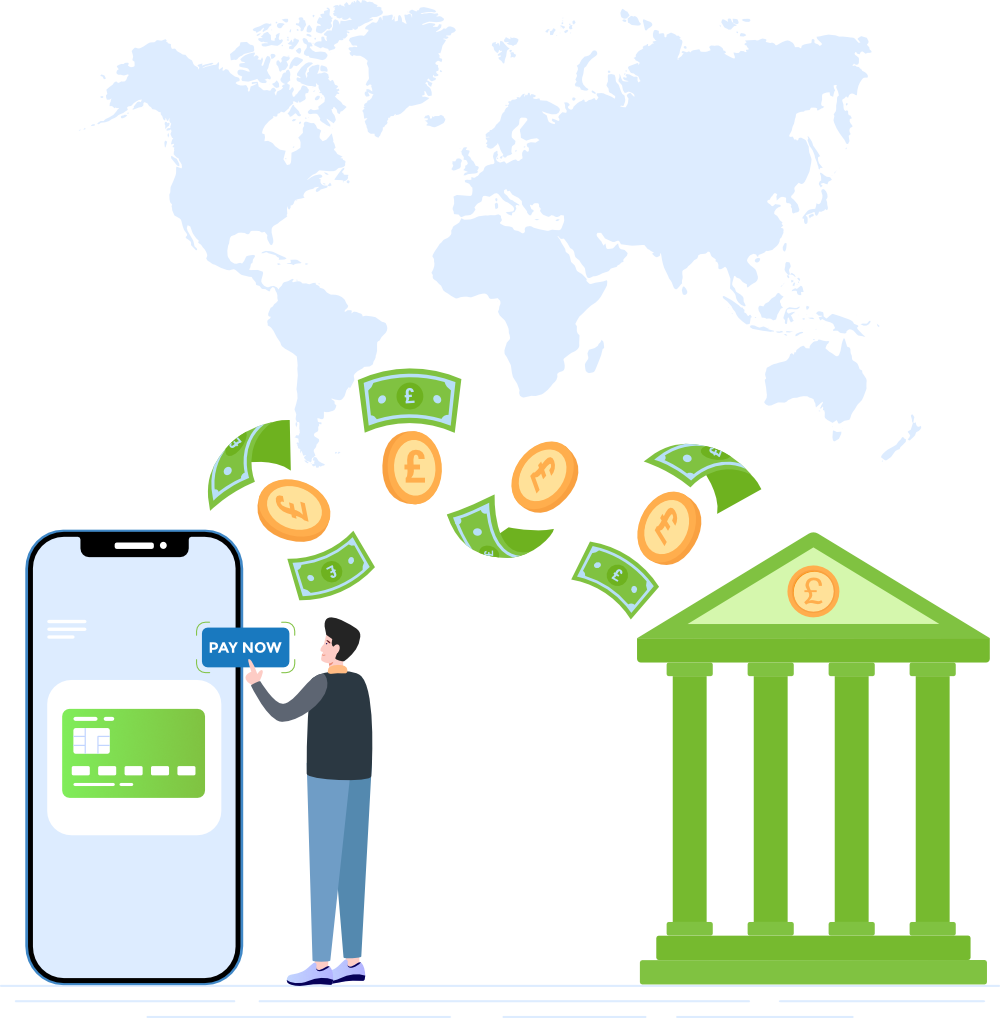Pay in GBP using our app and the recipient receives money in their local currency.